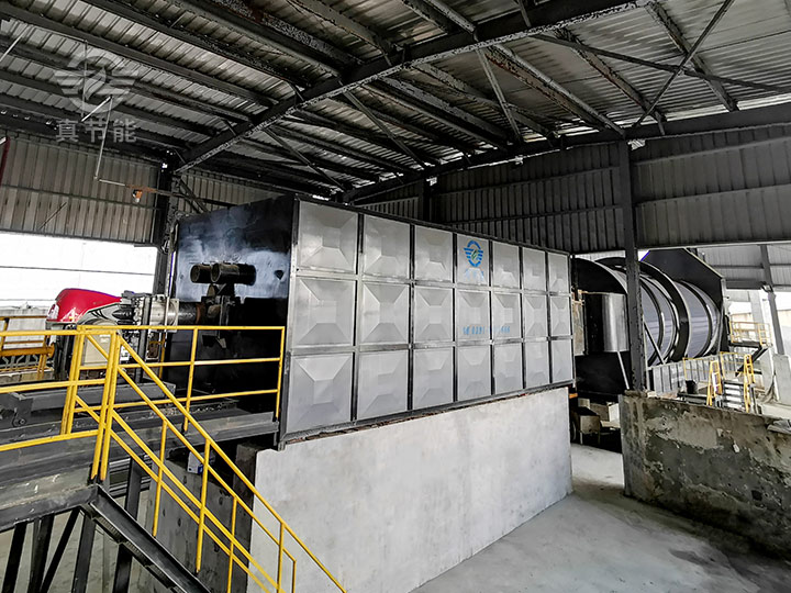 其工藝流程:熱風(fēng)爐是產(chǎn)生熱能的場(chǎng)所。將燃料加入熱風(fēng)爐中,通過燃燒產(chǎn)生高溫?zé)峤橘|(zhì),為烘干機(jī)主體提供連續(xù)穩(wěn)定的熱量。然后再由上料裝置(皮帶運(yùn)輸機(jī)、密封刮板輸送機(jī)或螺旋輸送機(jī))均勻連續(xù)的將物料送入烘干機(jī)內(nèi)部。物料與高溫?zé)峤橘|(zhì)在筒體內(nèi)部進(jìn)行熱交換,從而將物料中的水分蒸發(fā)出來(lái),實(shí)現(xiàn)物料從高濕高粘轉(zhuǎn)變?yōu)椴粷癫徽场__(dá)到烘干要求的物料,經(jīng)過出料裝置運(yùn)送出來(lái)進(jìn)行統(tǒng)一打包、裝載。而在烘干過程中產(chǎn)生的煙氣、粉塵等氣體,通過引風(fēng)機(jī)將其輸送至除塵設(shè)備當(dāng)中進(jìn)行凈化、過濾、降塵,實(shí)現(xiàn)氣體的達(dá)標(biāo)排放。整個(gè)烘干生產(chǎn)線一體化聯(lián)動(dòng),共同完成物料的烘干。